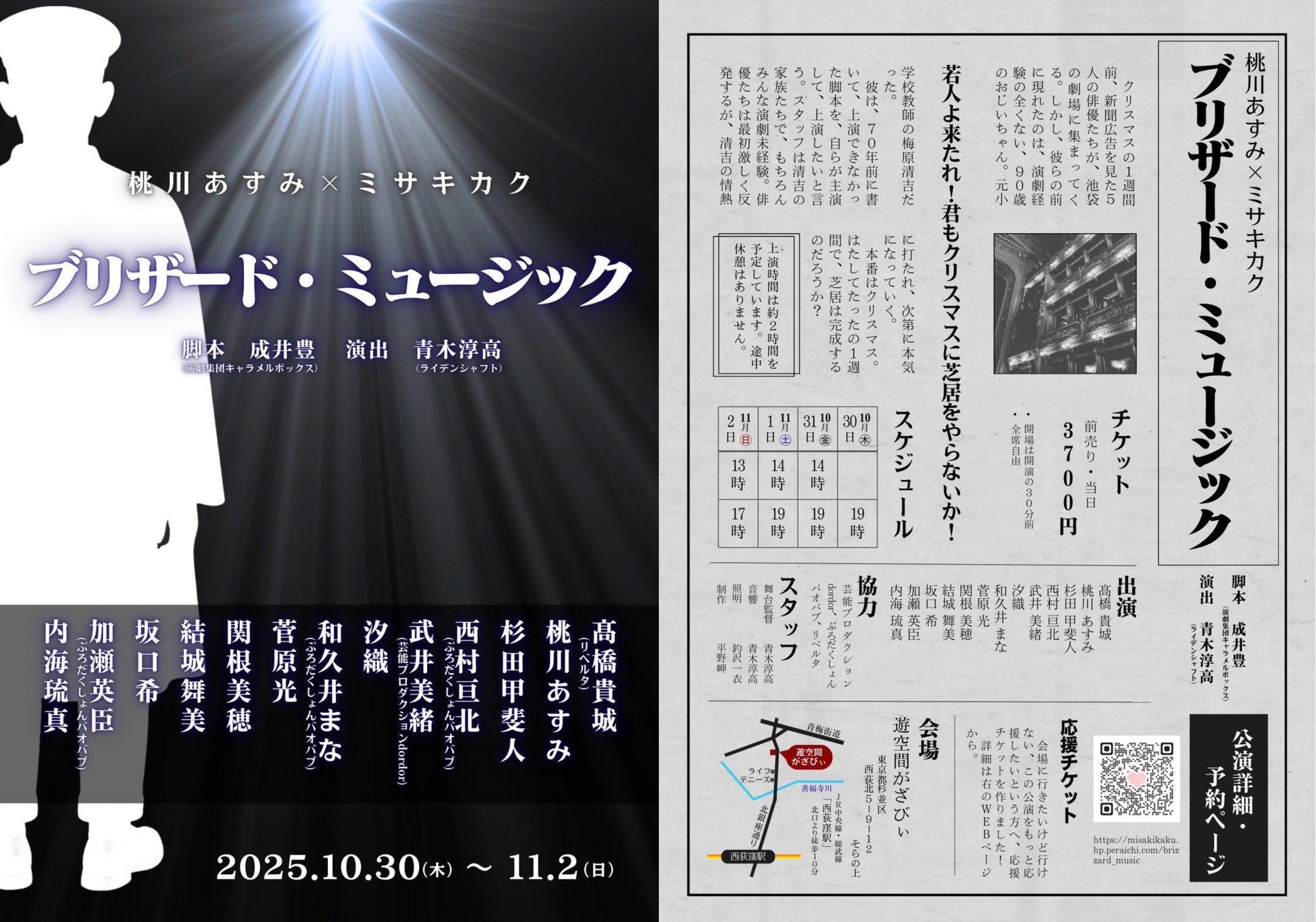 | タイトル | 桃川あすみ×ミサキカク 「ブリザード・ミュージック」 (脚本:成井豊(演劇集団キャラメルボックス ) / 演出:青木淳高(ライデンシャフト)) |